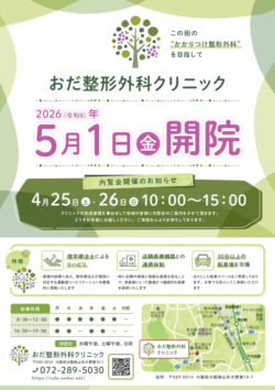 おだ整形外科クリニックは、2026/5/1(金)に新規開院予定です。